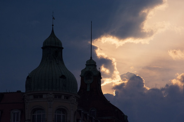晚上九点,阳光照在卡贝尔廊桥上。
