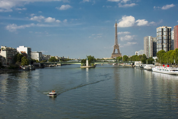 从下榻的15区酒店,走路20分钟,就能够到达塞纳河畔,看到埃菲尔铁塔和自由女神像。美国纽约的自由神像是法国送的,这里有一个小的。据说卢森堡公园旁边的才是自由女神的原型。塞纳河上开来一艘快艇,近点看,够拉风!