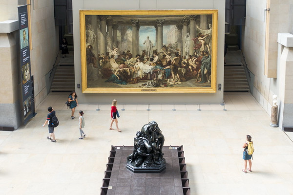 大厅正中的巨幅油画 “秃废的罗马人”,描述罗马帝国贵族的堕落生活,堡垒总是从内部崩塌的。后世人应引以为戒。-奥赛博物馆
