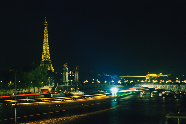 铁塔夜景和从铁塔往下看凯旋门。