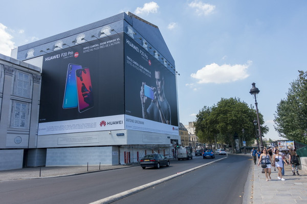 沿着塞纳河左岸漫步,见到巴黎街头巨幅P20广告。巴黎的中国元素不少,繁华地段有中国房地产广告,街头垃圾车是东风牌的,连酒店的镜子也来自中国。