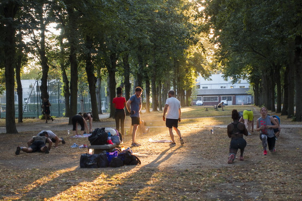 巴黎大学的黄昏,学生们在训练。