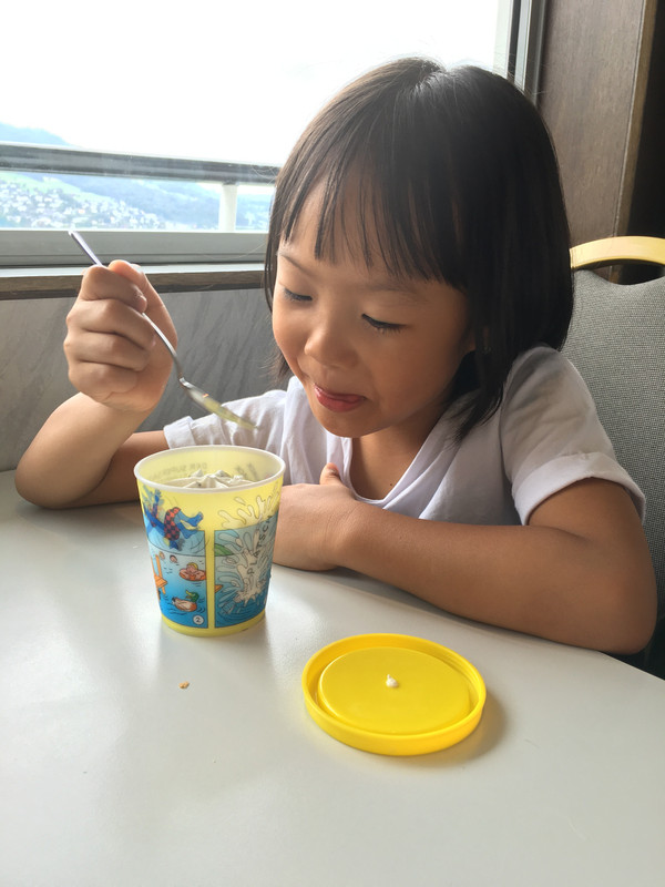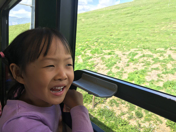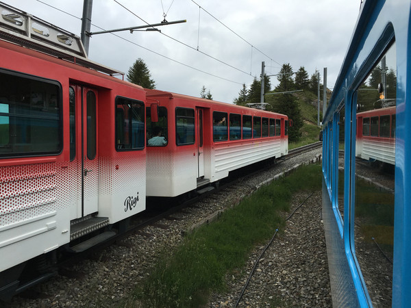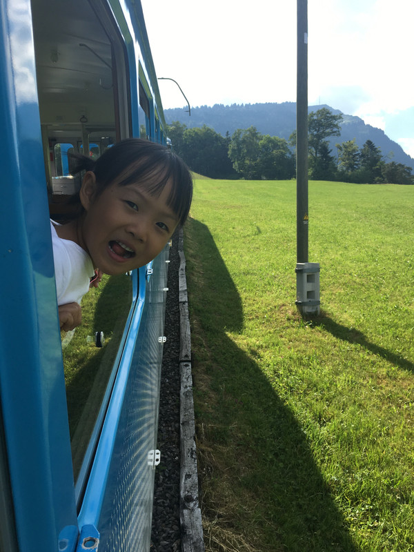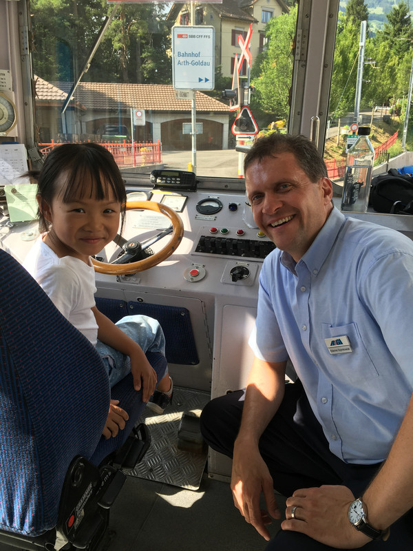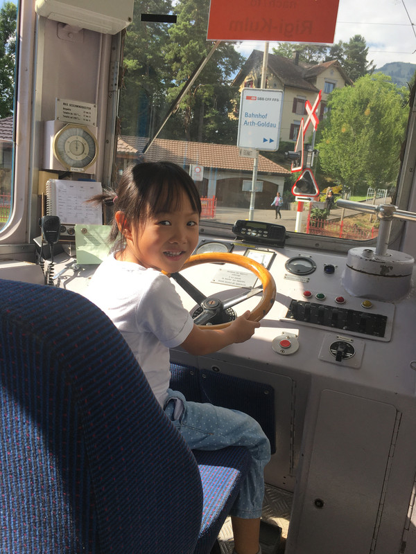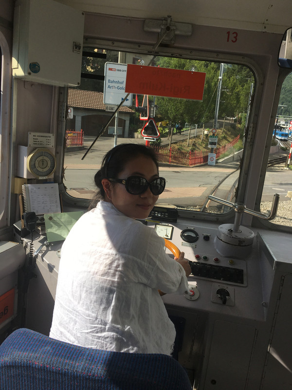 从皮拉图斯山下来,又坐小火车上瑞吉山,火车还没开先和司机合个影,当回小小驾驶员。