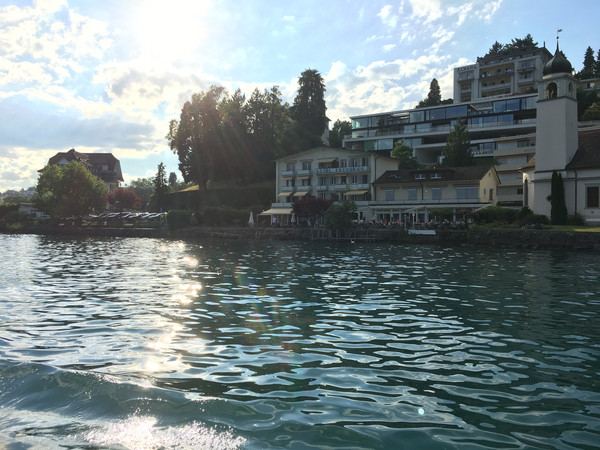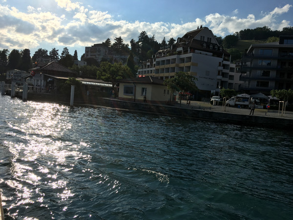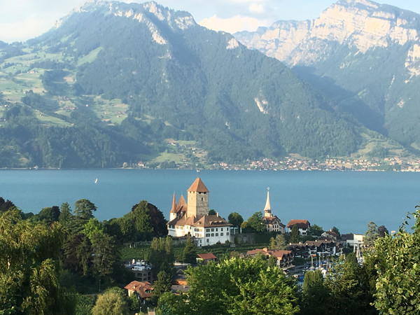 施皮茨小镇位于图恩湖南岸的一水湾边上,这里被雪山环抱,空气清新,被称为瑞士最美的小镇之一。小镇背靠群山,面对葡萄园,而最宏伟的是一座高高耸立的辉煌古堡——施皮茨城堡。古堡始建于1200年,外部建筑风格为中世纪伯尔尼式,内部装饰则融合了哥特、文艺复兴和巴罗克等艺术形式,质朴典雅,是瑞士不多的古迹之一。可是在这里和湖对面一连住了四晚居然没有去