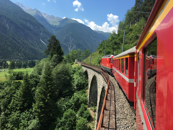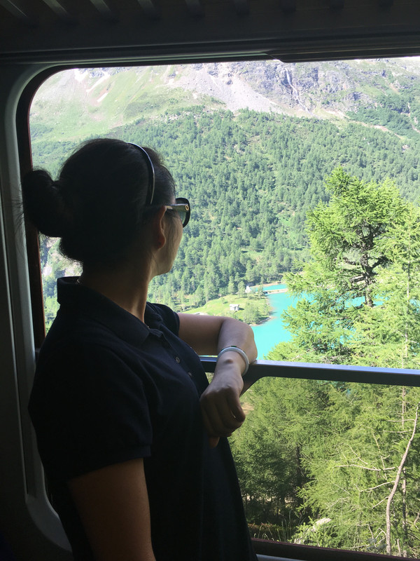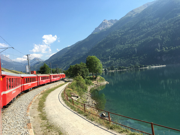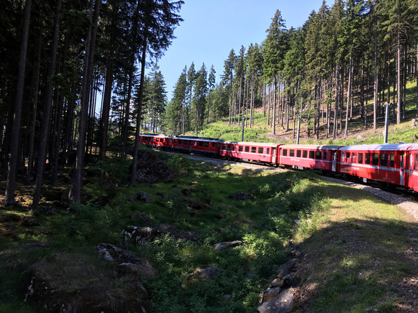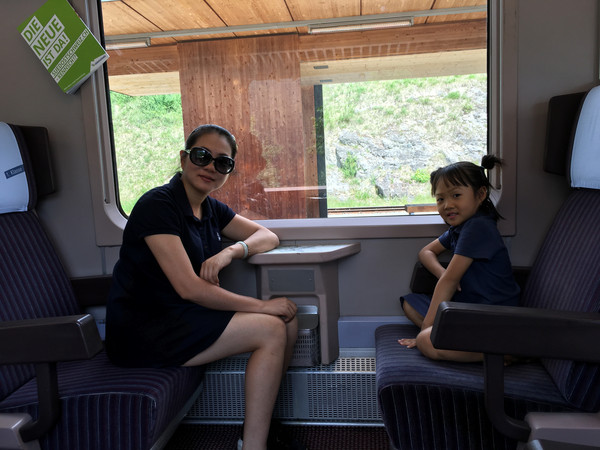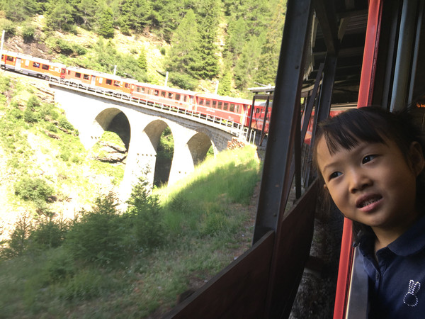 再见了提拉诺,再见了意大利,瑞士,我们来了!早餐后,乘坐蒂拉诺往库尔(Chur)方向的火车,车是慢车,还要在中间换乘一次,但沿途的风景真是美不胜收!即使你坐在行使很慢的火车里,欣赏着外面的景色,依然会感觉到时间过得好快。