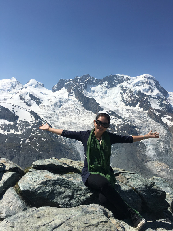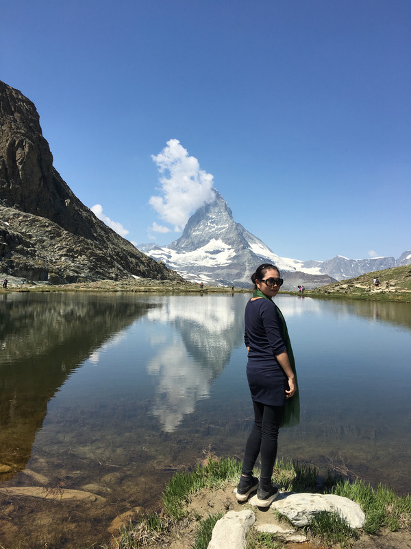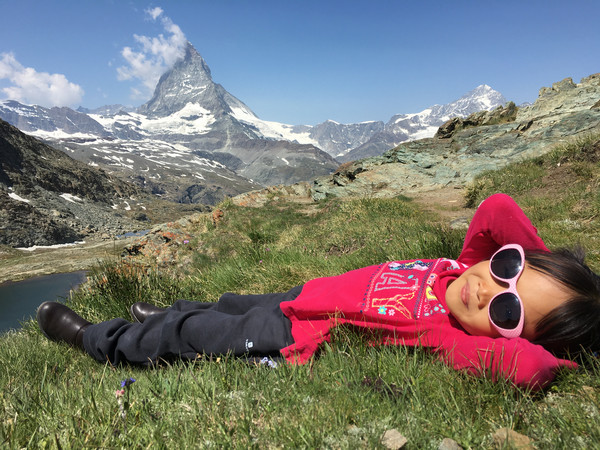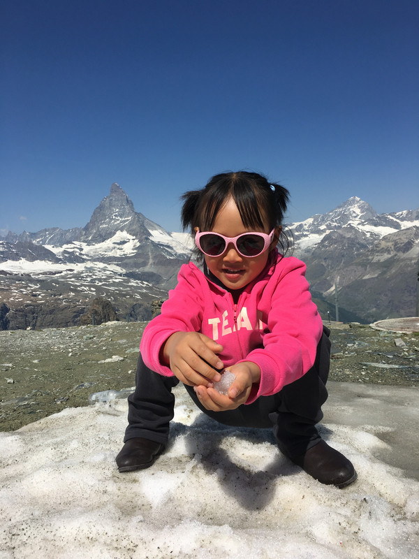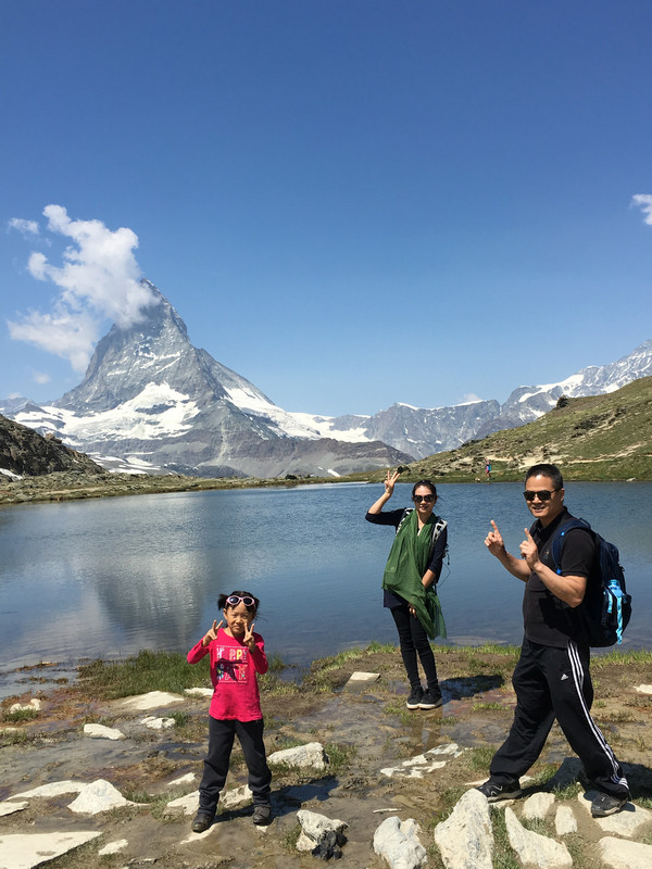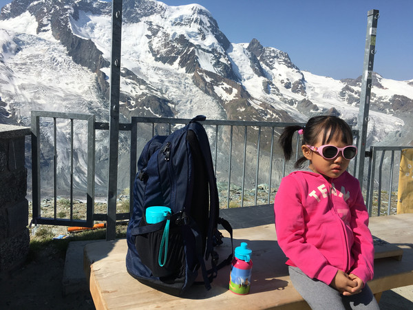 休息一晚后,第二天用瑞士通票购买乘坐齿轮轨道火车上戈尔纳格拉特山观景台的火车票。(采尔马特火车站左前方是戈尔纳格拉特火车站),在罗登波登(Rotenboden)站,还可以徒步到下面的里弗尔湖,天气晴好时能够看到马特宏峰在湖里的倒影。附近还有戈尔内冰川,走到悬崖边可以欣赏瑞士的第二大冰川。从罗登波登站还可以徒步到下一站里弗尔博格站(Riffelberg)。时间多的游客,还可以考虑马特洪峰冰川天堂(Matterhorn Glacier Paradise),我们就没有去(交通:缆车站位于采尔马特小镇镜头,从采尔马特搭乘缆车到达Furi后,转乘抵达Trockener Steg的缆车,再换乘前往冰川天堂的缆车,票价:8CHF,缆车往返票价99CHF,持有瑞士通票半价)。