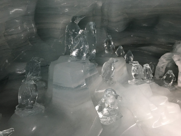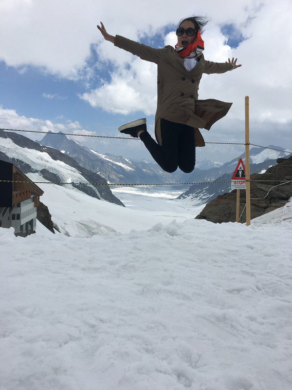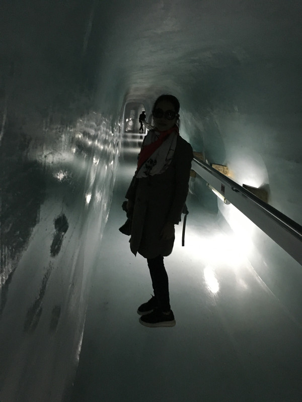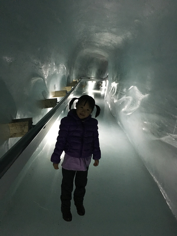 终于玩够了,该去体验冰雪的魅力了,正式上少女峰了。上少女峰,上山从劳特布伦嫩(Lauterbrunnen)方向,可以看到Staubbach和Trummelbachfalle瀑布。下山从格林瓦尔德(Grindelwald)方向,可以看梦幻斜坡。为了拍梦幻斜坡,我们直接在格林瓦尔德下了火车。少女峰上的景点有冰宫(Ice Palace)(路线:从少女峰车站经蓝色旋转门,再坐电梯达到上一层,蓝色的阶梯就是冰宫的入口),“阿尔卑斯震撼”环形长廊(Alpine Sensation)(路线:从少女峰火车站搭乘电梯到三层可以到达)。