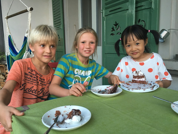 正好是女儿的生日,买了蛋糕和民宿家的小孩子一起分享