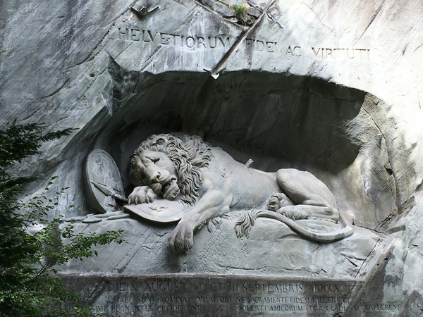 狮子纪念碑(Lion Monument)是琉森(卢塞恩)数一数二的雕刻作品,一支箭深深地插进了濒临死亡的雄狮背上,狮子面露痛苦的神情,前爪按盾牌和长矛,盾牌上有瑞士国徽。