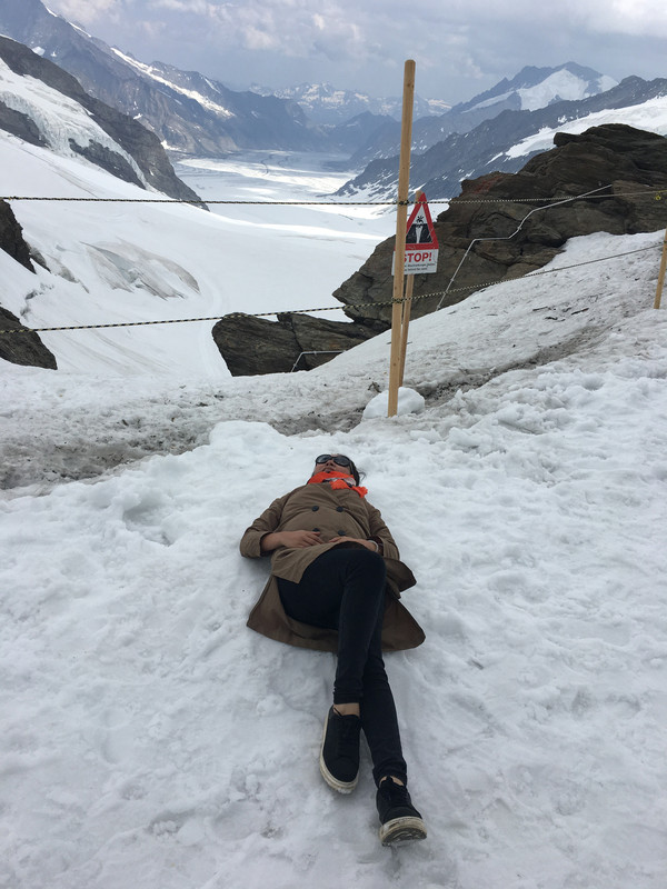 休整一晚后,第二天一早就去少女峰,从施皮茨坐火车到因特拉肯,我们从因特拉肯坐到劳特布鲁嫩下了车,去了米伦(Murren)(可俯瞰劳特布伦嫩峡谷),有漂亮的山谷风光和小木屋。路线:从劳特布伦嫩坐缆车(火车站出来向右走几十米就是去米伦的缆车站,拱形门)然后换乘小火车直达米伦火车站,米伦缆车站可以乘坐缆车到达雪朗峰(Schilthorn)。此外还有个文根(Wengen)小镇,镇上有门利兴山(Mannlichen),山上有观景台,可以欣赏四周的雪山。