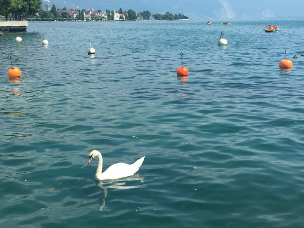 卢塞恩湖边好多天鹅
