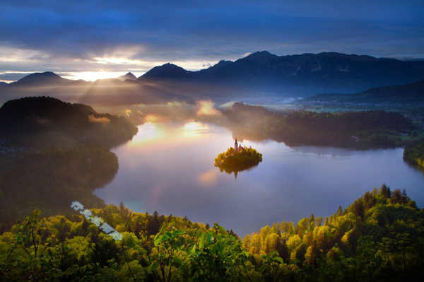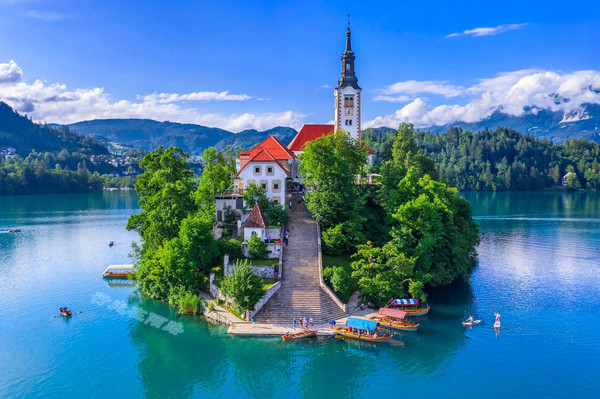 这段话出自斯洛文尼亚神话故事集《仙女湖》,书中所谓“山谷”即如今的布莱德湖,位于阿尔卑斯山脉南麓,离首都卢布尔雅那大约50公里,是斯洛文尼亚旅游业最耀眼的一张名片,连续多次上榜欧洲最知名的自然景区,年均接待国际游客达500万人以上。布莱德湖的形成原因与神话相传颇为相似:第四纪冰期(距今200-300万年前)使寒带冷气下沉,阿尔卑斯山脉凝结成巨大冰川,在数万年重力作用下,部分碎裂的巨型冰川滑至低处,布莱德湖从山谷盆地变为冰川堆积区。冰期过后,冰川融水顺着冰体滑行轨道逐渐堆积成布莱德湖湖。