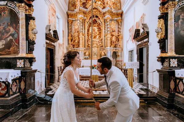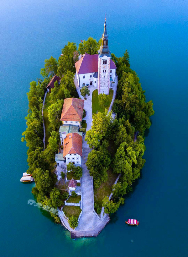 很多欧洲人说“斯洛文尼亚是浪漫国度,也是举办婚礼的最佳地点”,其实是指布莱德湖心岛上的朝圣教堂。千余年的宗教文化渲染,再加上斯洛文尼亚土著的“仙女湖”传说,赋予了布莱德湖心岛近乎天成的浪漫与美好,也被称为是“到处都有爱情故事的地方”。土著传说湖心岛初期有座“神庙”,里面供奉斯拉夫神话掌管爱与生育的“兹娃女神”。所以举办婚礼也会沿用斯拉夫习俗,当婚船抵达湖心岛时,先上岸的丈夫要把妻子抱下来(摔过几个新娘,改成扶新娘下船),再牵手走上99级台阶,夫妻在此期间必须保持沉默,以免惹恼喜静的“爱神”。