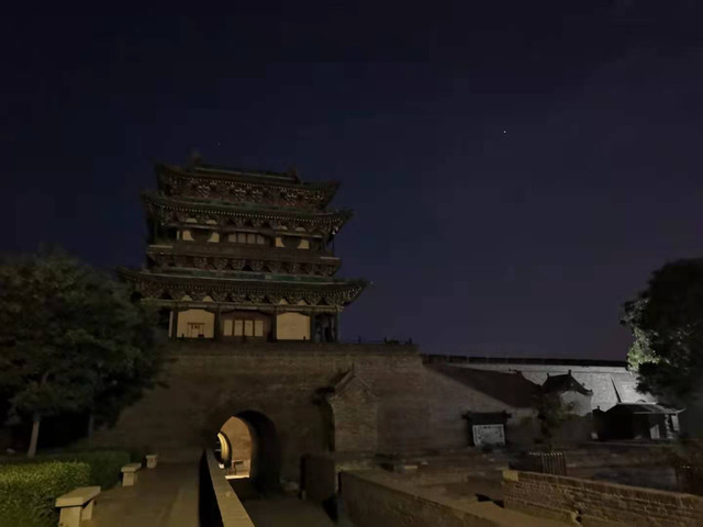 晚上坐了车去平遥 动车一个多小时 出了高铁站做一个公交