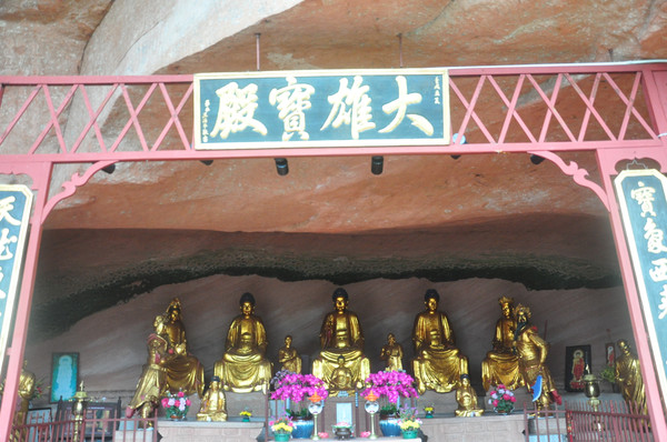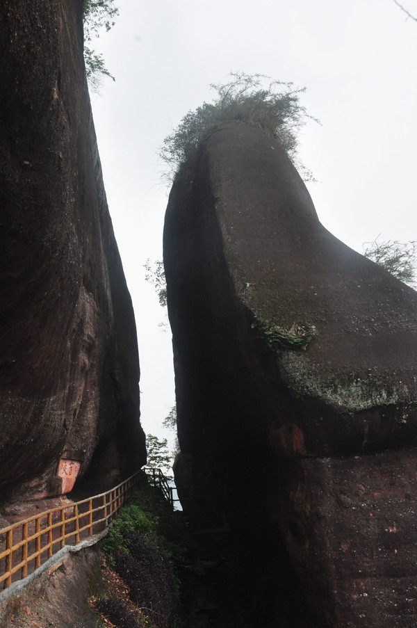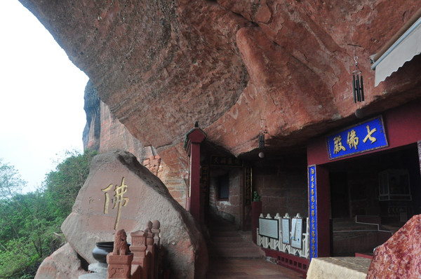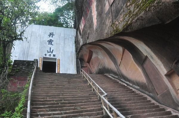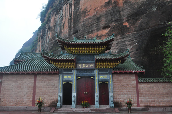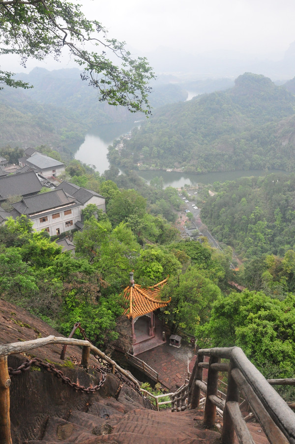 然后,原路返回往上是别传寺,别传寺:"别传"二字,取自达摩西来,不立文字,单传心印的"心印别传"之意。顺治十八年,澹归率徒至丹霞开辟道场,弘扬佛法,见此地群峰罗立,如子孙环伏,一江如带,绕案西流,有法王踞座之象,遂在此开山立门,是为别传寺建寺之始。不过,别传寺现在似乎香火不旺,门庭冷落,游客几乎是过门而不入。看过别传寺,雨也停了,我们决定继续上山。