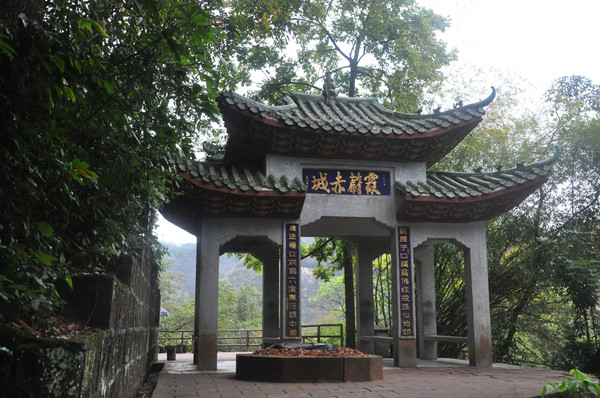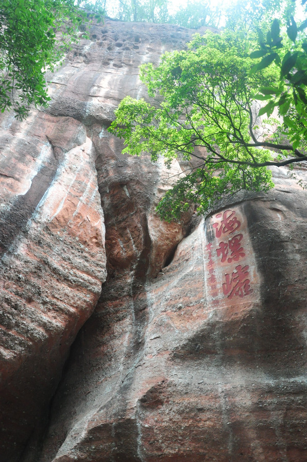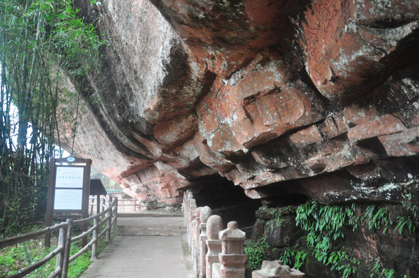 我们游览长老峰的路线也是参考了许多旅友的攻略而形成。走登山道先去锦石岩,锦石岩顶接海螺崖,下临锦江,由千圣岩、祖师岩、伏虎岩和龙王岩四岩组成"宛若殿堂,深邃虚洞",因岩内石壁万色间错,四时变态,故名"锦石岩"。岩内有锦岩寺,悬崖之上,凿壁而成,甚为奇观。
