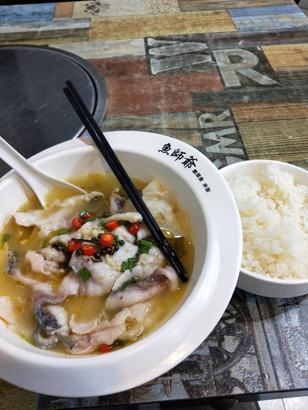 晚饭回到农贸市场,在妈祖中学旁边选了一家酸菜鱼饭20元,味道还行
