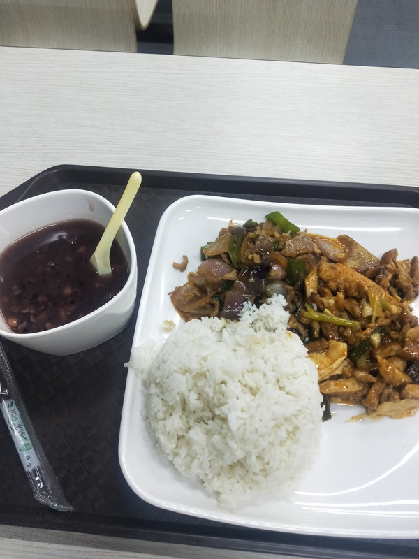 农贸市场很少人,车也少,店也少,一样没啥好吃的,而且消物价水平比一线城市还高,随便找了一家店在路口叫原滋味,点了一碗炝肉+米饭,花了22元,味道很清淡,好贵啊,不过能吃饱。