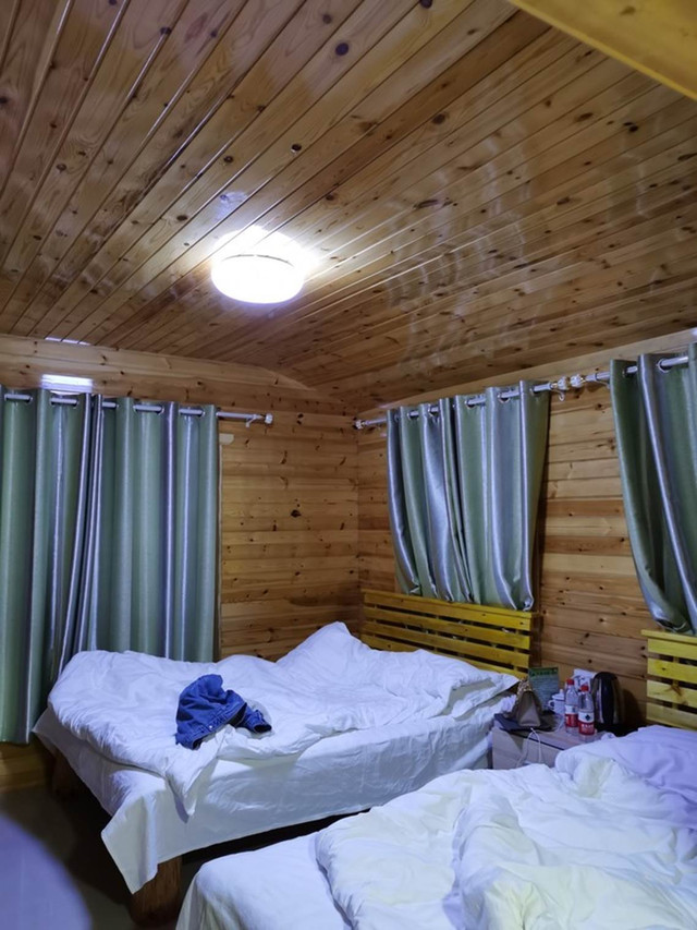 当晚住在一个小酒店里面。天气好的话,晚上可看到星空,可惜那天是阴天。但是,从远处看过来,木屋还是很不错的。