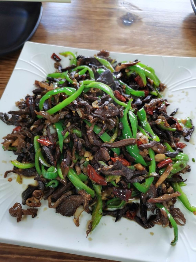 一路开到了得耳布尔,是一个边境小镇。在呼伦贝尔玩,中午看到小镇或者饭店就可以进去了,因为一路上遇到得小镇也不是很多。这次吃得还是铁锅炖。但是里面太多菜了,肉几乎没什么肉,味道一般。价格倒是很高。
