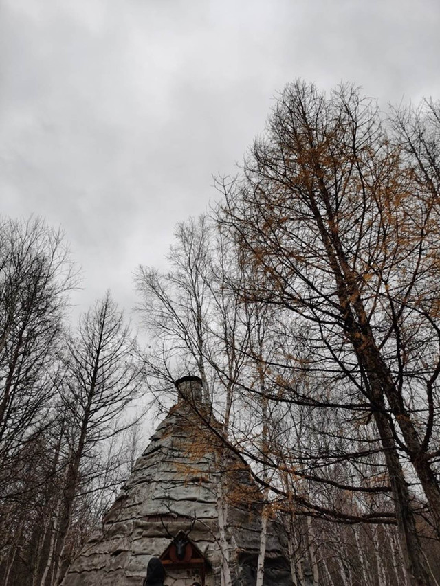 这个撮罗子是鄂温克族做的小屋子,以前他们就是在森林里狩猎。原本以为大概90年左右就没人狩猎了,据说这里的人是在14年的时候才下山生活的,不知真假。