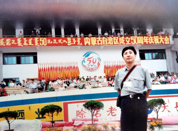 1997年7月21日, 我们参与了盛况空前的庆祝内蒙古自治区成立50周年那达慕大会。在呼和浩特市焕然一新的活动举办地,即亚洲最大的赛马场之一的内蒙古赛马场分外绚丽多彩,只见披上节日的盛装的会场上花团锦簇,彩旗飘扬,全自治区各族健儿欢聚在这里同台竞技,以蒙古族传统的体育形式,庆祝内蒙古自治区成立50周年。