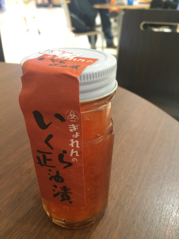 除了这些点心以外,机场里的各类海鲜制品非常诱人。我们的午餐最后是买了几个日本的果子,加一盒五色海鲜饭,另外买了一瓶1000日元的鱼籽搞定的。我的饭上铺满了红色的鱼籽,这在上海是无法想象的。我已经尽最大努力地品尝各类美食了~回来再控制体重吧