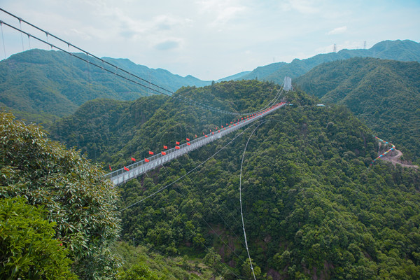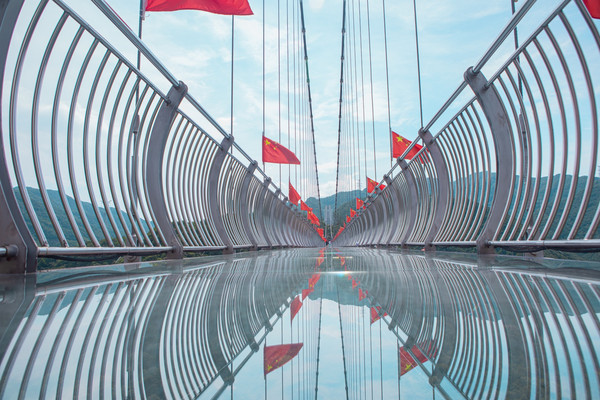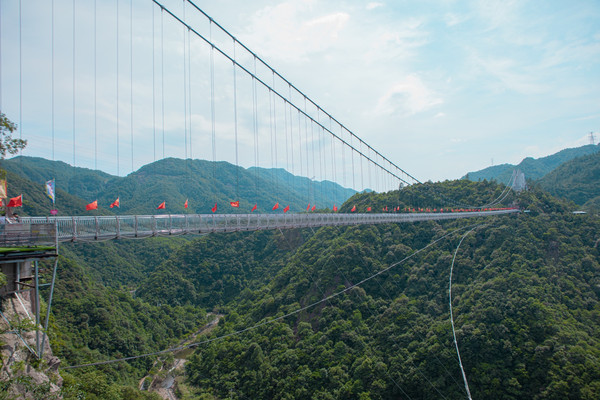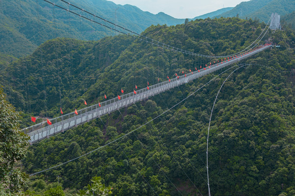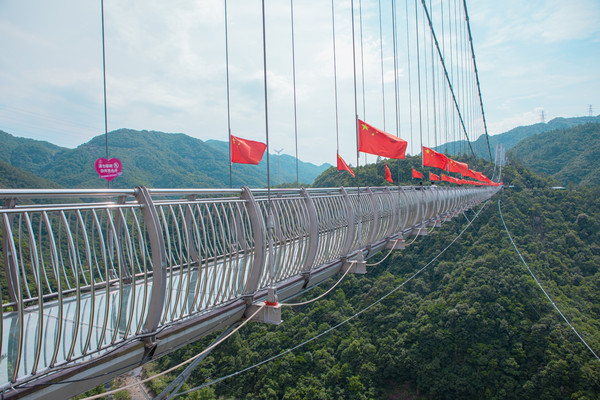 情人谷除了是情侣们相约打卡的爱情胜地,更是一座得天独厚的观景台,景区内设有一座玻璃吊桥,站在此处,可以将蛇蟠岛无限风光尽收眼底,吊桥两侧红旗飘扬,处处彰显生机,幸福之意油然而生。