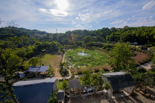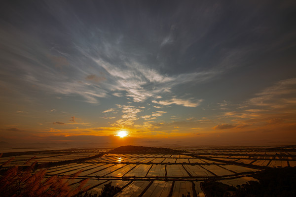 最让我惊喜的是这一幅幅农家田园风光图,这是站在乡间小道无法感受的壮美。一块块农田整齐规划,错落有致,融入了一点巧思,低饱和的黄绿红相互拼错,艺术感油然而生,让人叹为观止。遗憾的是由于时间关系,未能等到落日时分,感受波光帆影的绝美。