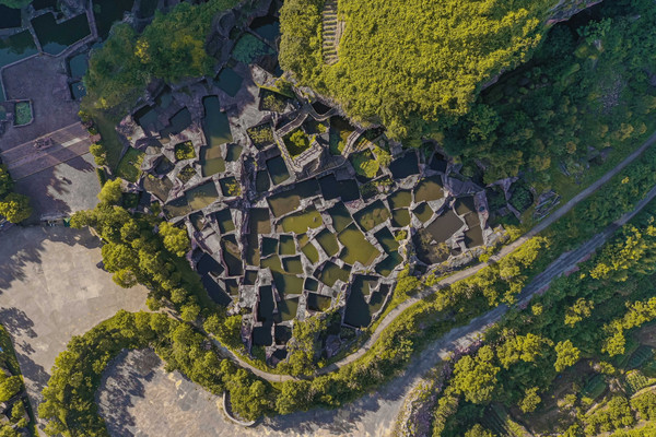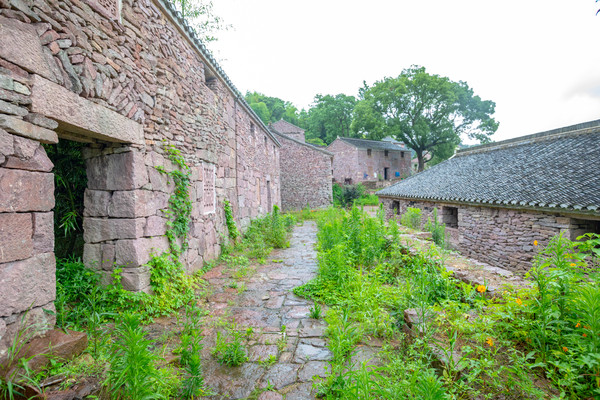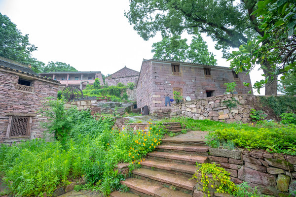 黄泥洞古村地处山脚下,以青山为友,以大地为床,四周绿树环绕,宛若一座森林氧吧,初见时就被这满屏的清新之意所吸引,仿佛走进诗人笔下的“绿野仙踪”,让人耳目一新。不同于其他江南古村落,这里看不见粉墙黛瓦的清一色徽派风格,取而代之的是斑驳古朴的石墙,这里的房屋大多由石块堆砌而成,古朴之余增添了几分壮美,沿着凹凸有致的石板路缓缓踱步,感受湿漉漉的空气中夹杂着植物的清香,沁人心脾,雨后的南方实在令人着迷。