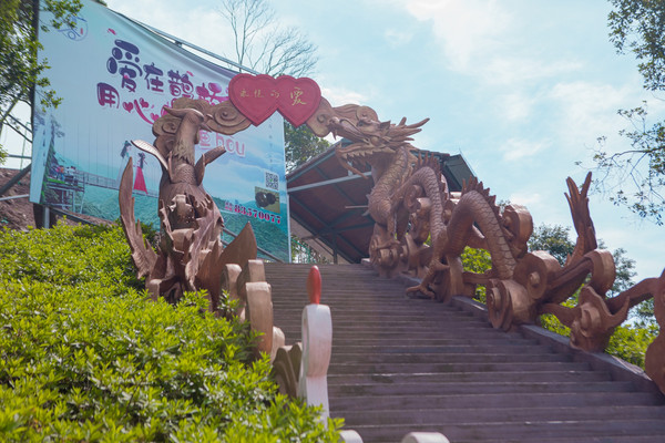 初见情人谷,映入眼帘的是一座别具一格的门楼,由木头雕琢而成,一侧爬满青绿色的藓类植物,不知是大自然天成,还是人工为之,让人眼前一亮。“情人谷”三个大字历历在目,黄底红字,尽显古朴。拾级而上,两旁的雕塑龙飞凤舞,透露出浓浓的精致气息。漫步于情人谷之中,四周树木苍翠,空气清新,沁人心脾。