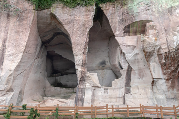 景区绿树面积很大,古老的洞穴与青翠的树木相互依偎,将匠人的审美艺术与大自然的神奇力量融为一体,漫步其中,让人倍感艺术熏陶。洞内曲径通幽,有的仅容得下一人通过,有的宽敞平坦,处处充满惊奇。