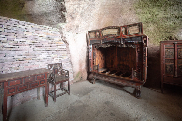 沿着小道缓缓前行,仿佛化身考古学家,一睹这绝世罕见的石窟艺术。景区内设有众多小景点,其中最让人记忆犹新的,是古洞人家,仿佛隔着石门,都能感受到藏不住的烟火味。古洞人家的入口处清新雅致,一对憨态可掬的石狮子静静矗立着,身前挂着喜庆的大红结,瞬间注入灵魂,整个画面都鲜活了起来,让人不由得会心一笑。