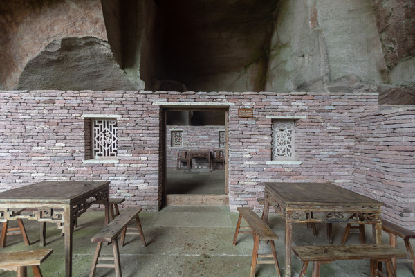 移步来到里侧,迎接我的是几张饱经沧桑的桌凳,桌面在时光的沉淀下逐渐褪色,开始发白,污渍清晰可见,一瞬间,仿佛能看到古代岛民日出而作日的场景。一旁的石窗花格外引人注目,与破旧的家具形成鲜明的对比,精致气息一览无遗,让人不由得感叹别出心裁的大地艺术。