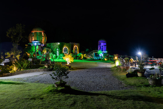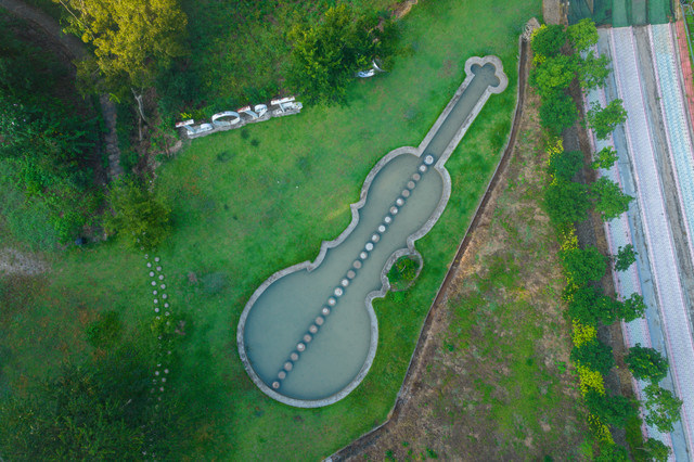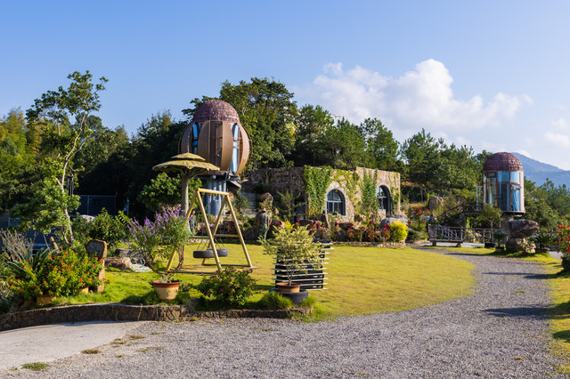 整个营地生意盎然,充满了鲜花、绿草、“蘑菇树”、石屋、树屋,仿佛是“爱丽丝梦游仙境”。营地里还有爱心池、水上沙发、水上帐篷、秋千、天梯等网红打卡点。爱心状的水池,据说原先是个消防水池。水池上面的水上沙发和水上帐篷,是出片的好地方。