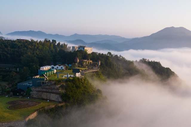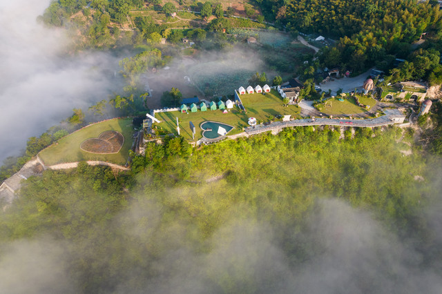 清晨的山谷,静悄悄。你可以听到清脆的鸡鸣声和风的呼呼声。一觉醒来,就能看到天边的日出和云海。但是栖心谷的日出和云海,与普通的又有些不同。伴随着日出,栖心谷早已沦陷在茫茫云海之中。四周云雾缭绕,胜似仙境。
