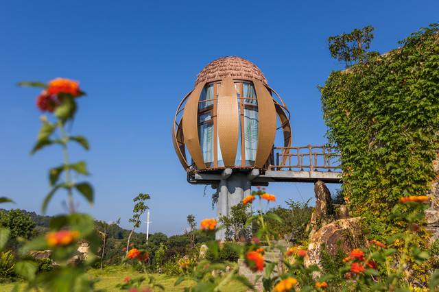 景区民宿最富特色的房型,吸引了众多游客前来打卡。根据造型主要分为三种,“子弹头”、“南瓜”和普通树屋。