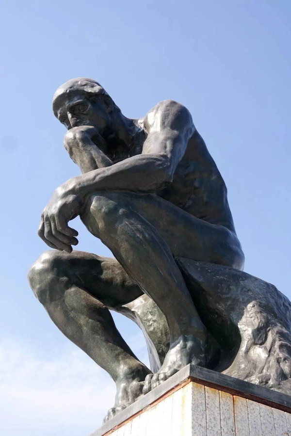 《思想者》是最为大众所知的雕塑艺术品之一,不论哪个城市,在书店、图书馆、学校、广场等具有文艺或学术气息的地方,很大概率能看到这样一个托腮思考的形象。