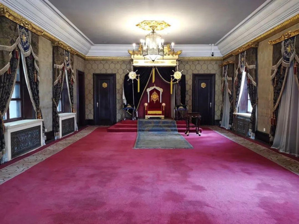 (勤民殿:也称“正殿”,是溥仪举行典礼、接受朝贺、会见使节、召见日伪高官、颁发任命奖的场所,1934年3月1日溥仪在这里举行了第三次登极大典)