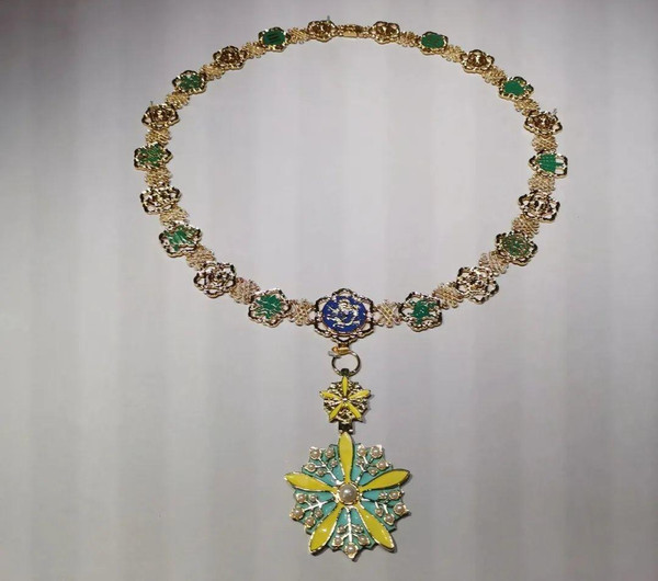 兰花纹取意于《周易》“二人同心,其利断金,同心之言,其臭如兰”,象征日满亲近如一体,成金兰之交。