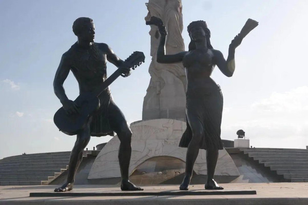 配雕是来自五大洲的五对男女,他们载歌载舞,或热烈奔放,或优雅柔美,多姿多彩,相映成辉,表现了世界各国人民珍视友谊、热爱和平向往春天的主题。