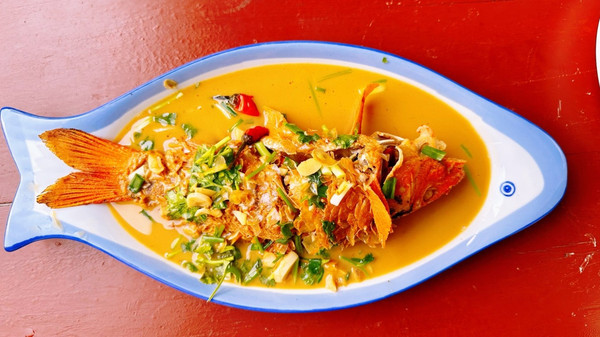 田鱼是 青田 著名的特产,为一种变种的鲤鱼,有四种颜色。虽出自稻田而无泥腥味,肉质细嫩,味道鲜美,鳞片柔软可食!还没端上来,我就被这香味吸引了。配上汤汁,我可以连续吃五碗米饭!