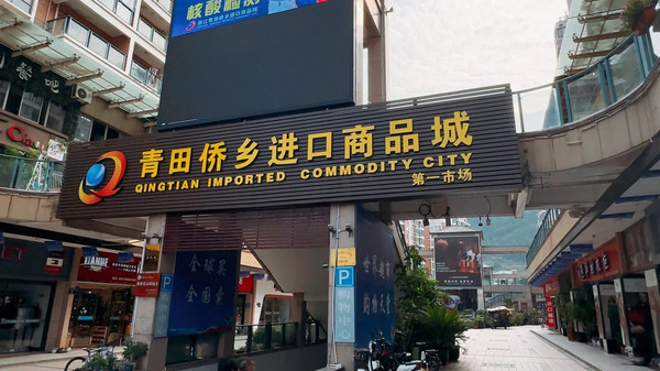 青田 侨乡进口商品城,从红酒中心走过来也就大概五分钟的距离,被称为“世界超市”,是 青田 的“金名片”。