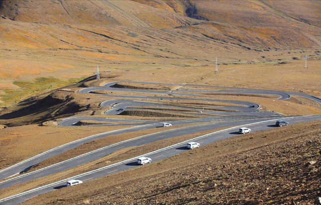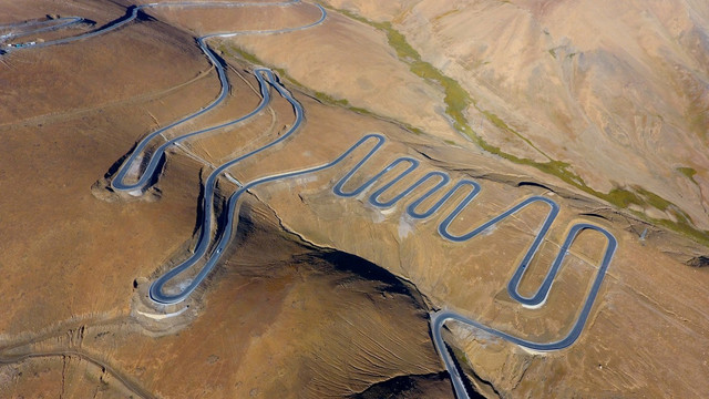 早餐后离开塔钦上219国道,在公路旁可以清楚地看到【 冈仁波齐 神山】雄伟的身姿。到巴尔兵站需要56公里,要检查身份证和边防证。出巴尔兵站后,开始翻越海拔5160米的【隆嘎拉山】。过山口后,山体的颜色变得五彩斑斓,而且极有层次感,依次为金色、褐色、白色、灰白色,而且,这些色彩都呈同一水平线。连绵起伏、色彩缤纷的群山,如同进入一个奇幻世界。