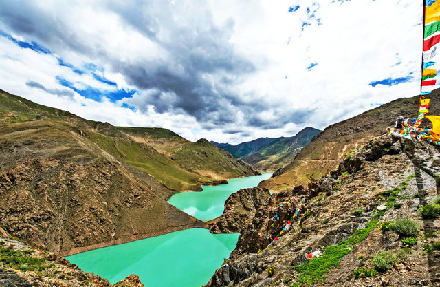 在止热寺稍作休息后继续前行,先走一段艰辛的上坡碎石子路,爬到卓玛拉山口(海拔5630米),之后再沿陡峭的碎石小道下山,这一段是整个转山途中最危险的一段,很容易崴脚,领队也格外小心,随时提醒我们。山口南面是碧绿如玉的【托吉错】,海拔5608米,意为慈悲湖。传说在此湖中沐浴,能洗净身上的污垢和孽障。