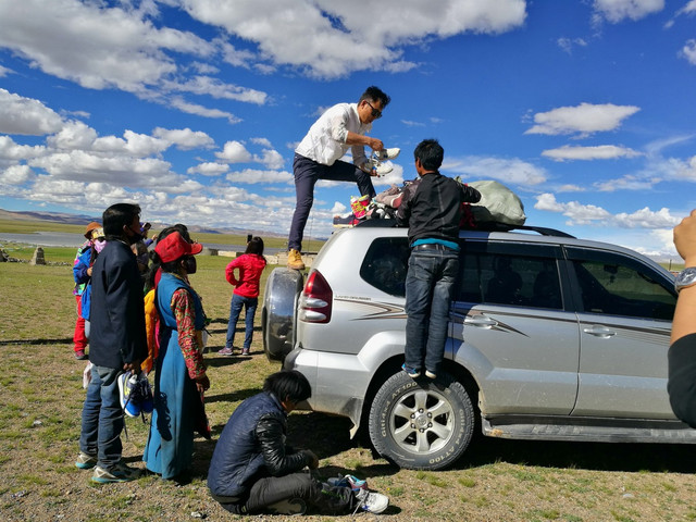 而他带领的康巴兄弟连车队,每次都会在车上带上一些从外面募捐来的衣服、鞋子、书包等爱心物资,沿途发放给有需要的藏民朋友们。(若有旧衣服之类想要捐赠的,也可以联系他们。)