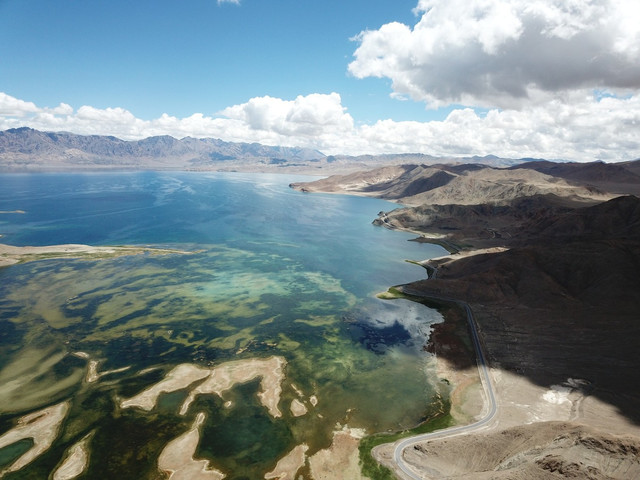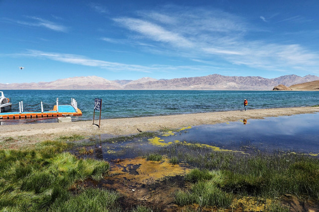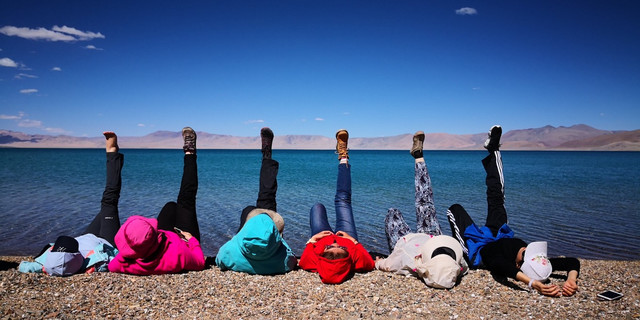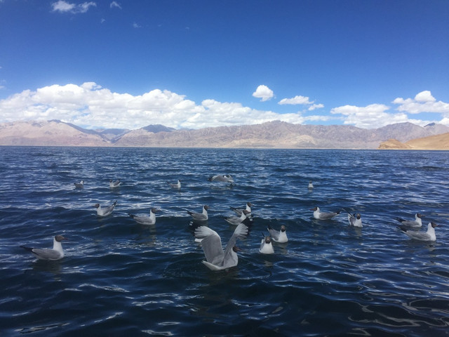 早餐后便沿新藏公路班公湖方向出发。【班公措】位于 阿里 地区 日土 县城 西北 约12公里处,又称“错木昂拉红波”,藏语意为“长脖子天鹅”,有世界 上海 拔最高的鸟岛。班公措为内陆湖,该湖的最奇特之处在于它是一个由东向西水中含盐量不同的湖泊,东部也就是在我国境内的湖泊为 淡水 湖,鱼虾肥美,而西部,也就 印度 境内为咸水湖,湖水苦涩难咽,也没有鱼类生活其间。