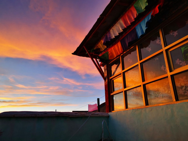 之后抵达食宿点。山上有简餐,方便面、面条、炒饭、盖饭,价格在20-30元不等,还是很良心的,毕竟海拔那么高,做起来也不容易。到达住宿地点,腿感觉已经不是自己的。住宿条件比较差,7/8人的大通铺,都是发电,晚上11点左右会断电。
