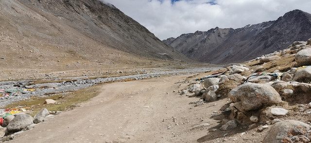 由经幡广场下坡,小道折向北进入拉曲峡谷,沿着河的东岸,不远就到达了【止热寺】。止热寺面对神山 冈仁波齐 峰,近距离观 冈仁波齐 ,更有不一般的感受。(止热寺也可以住宿,但是建议体力还行的话就继续前行翻过卓玛拉山口,因为在止热寺住宿以后,可能高反症状会加重,而且第二天会特别累,翻越卓玛拉山就更加困难)。