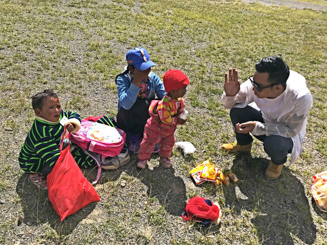 下面图中这个跟小朋友正愉快交流的叫扎西巴九,是我们此行的领队,也是康巴兄弟连车队的负责人之一。他每年5-10月都会行走在这条线上,他说,今天行程所经过的地方,是我们整个线路沿途最贫困的地地方,当地许多人连双像样的鞋子都没有。